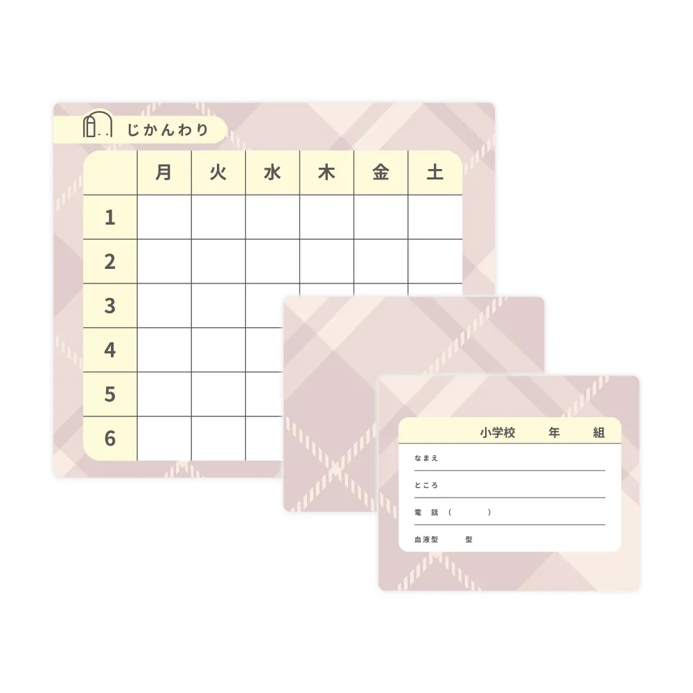 - 内装柄に合わせた時間割表と両面仕立てのネームカード